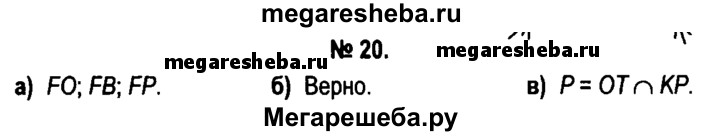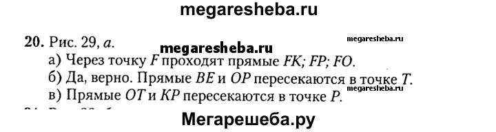 20. Рассмотрите рисунок 29, а. а) Назовите прямые, которые проходят через точку F. б) Верно ли, что прямые BE и ОР пересекаются в точке Т? в) В какой точке пересекаются прямые ОТ и КР ?