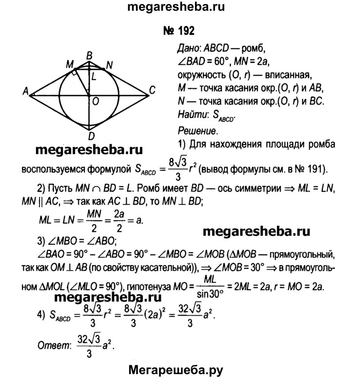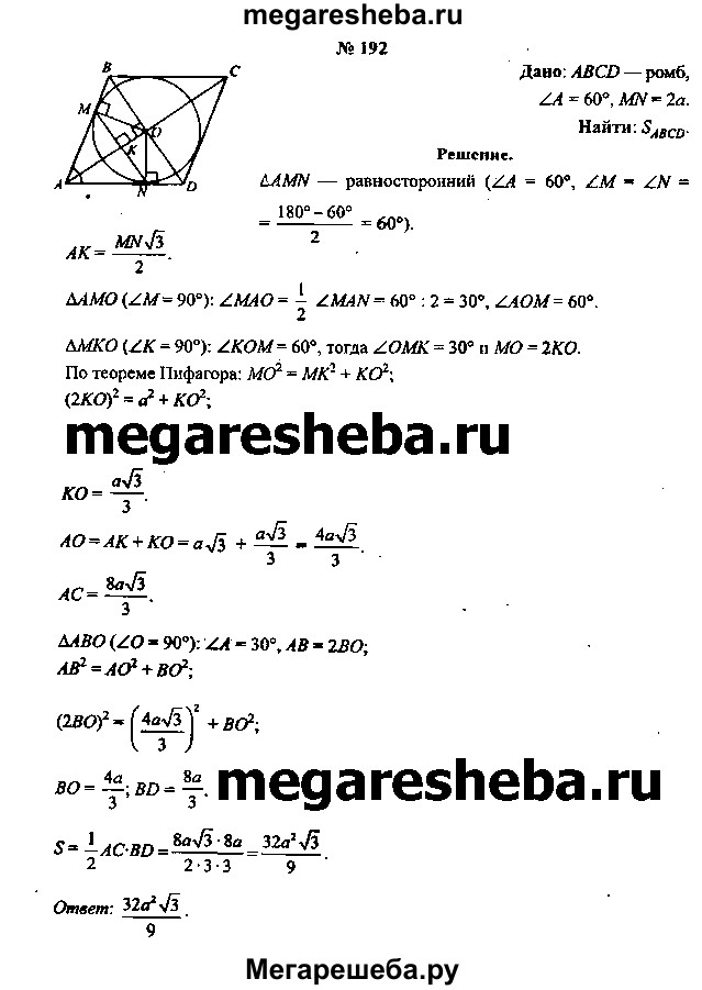 ГДЗ по геометрии 9 класс Шлыков номер - 192