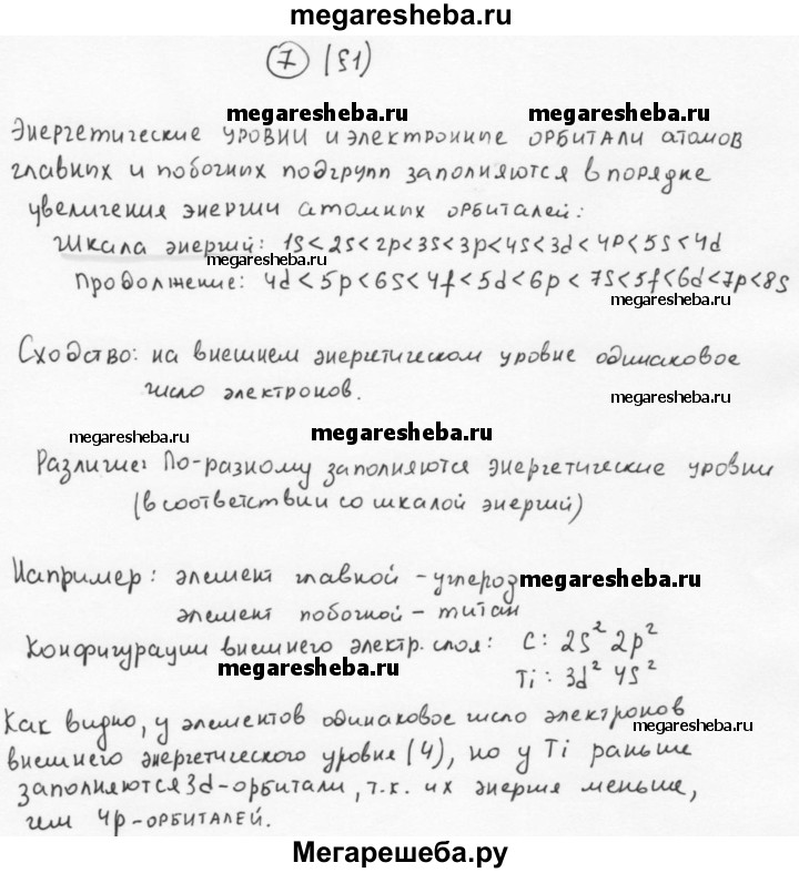 7. Как заполняются энергетические уровни и электронные орбитали у атомов химических элементов главных и побочных подгрупп таблицы Д. И. Менделеева? В чём сходство и различие в строении атомов элементов главных и побочных подгрупп одной группы?