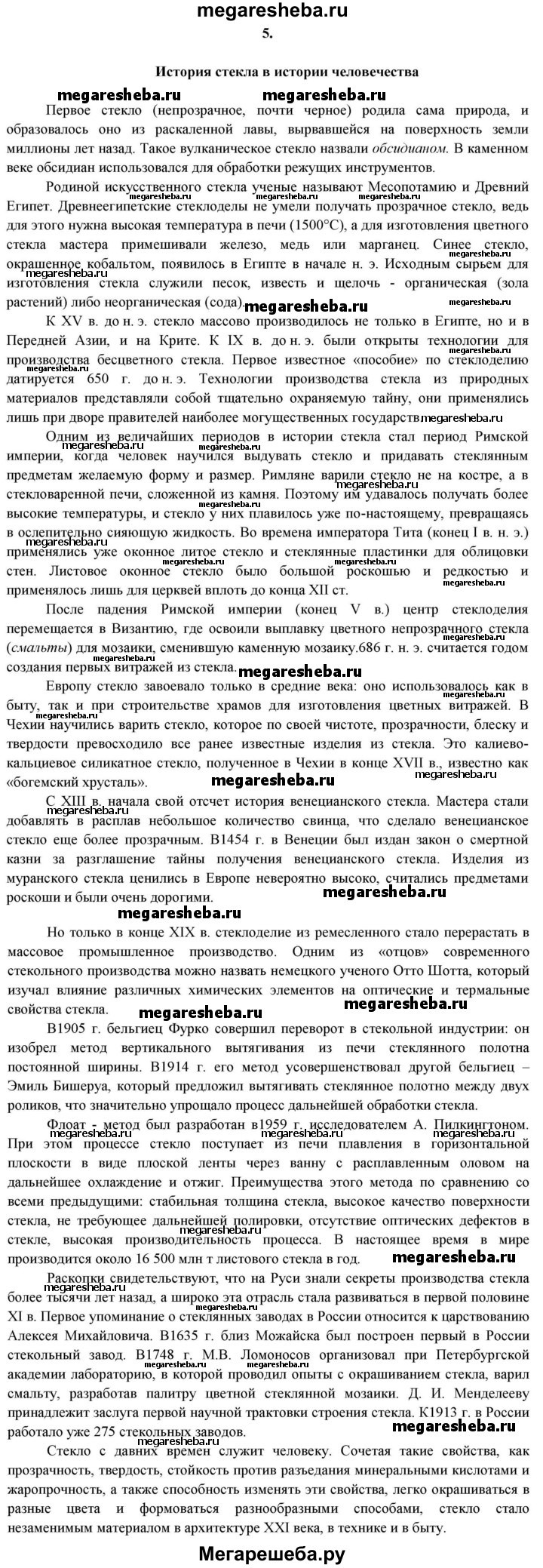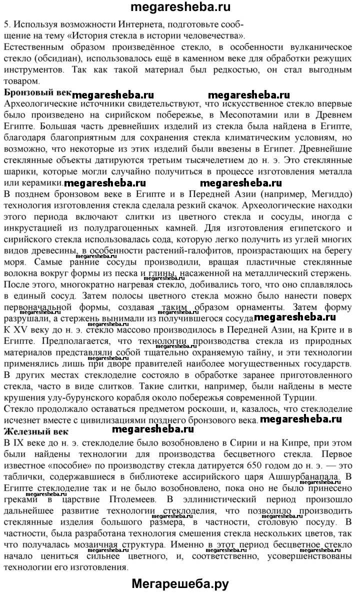5. Используя возможности Интернета, подготовьте сообщение на тему «История стекла в истории человечества».