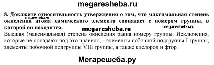 8. Докажите относительность утверждения о том, что максимальная степень окисления атома химического элемента совпадает с номером группы, в которой он находится.