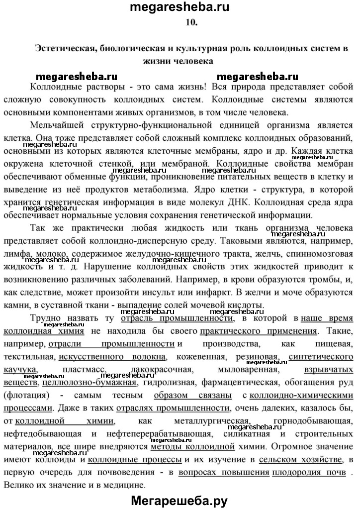 10. Подготовьте сообщение-презентацию на тему «Эстетическая, биологическая и культурная роль коллоидных систем в жизни человека», используя возможности Интернета.
