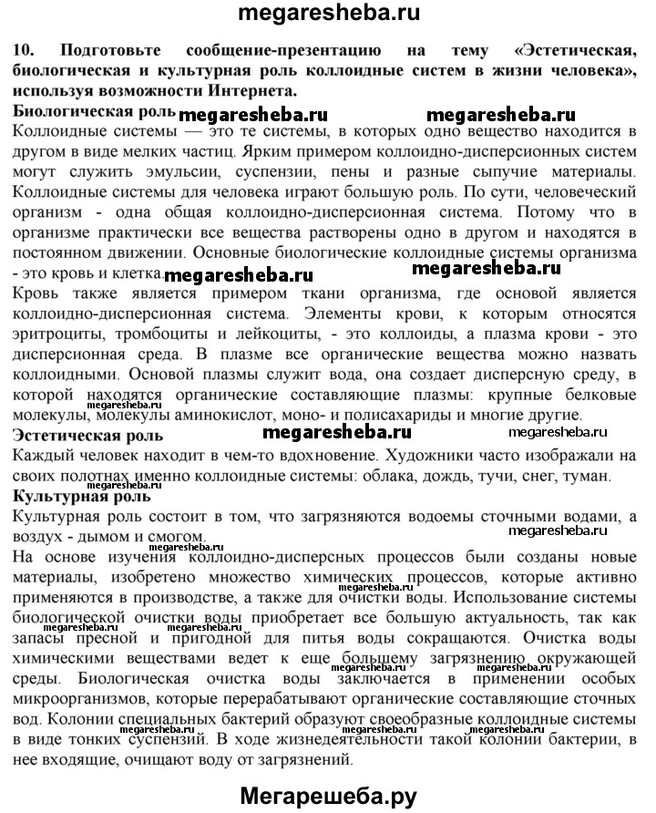 ГДЗ по химии 11 класс Габриелян Базовый уровень Строение вещества Дисперсные системы - 10