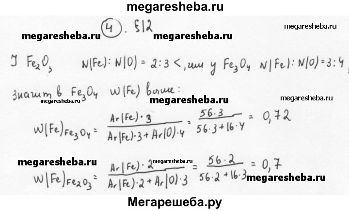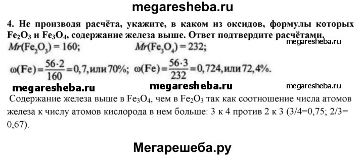 4. Не производя расчёта, укажите, в каком из оксидов, формулы которых Fe203 и Fe3O4, содержание железа выше. Ответ подтвердите расчётами.