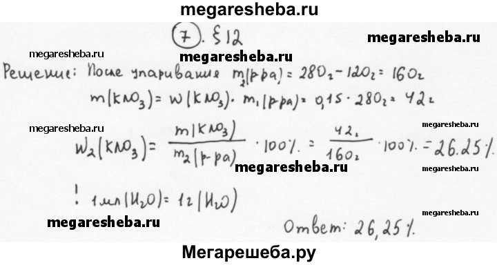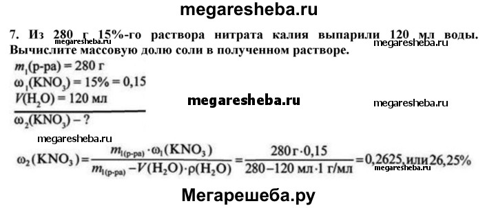 7. Из 280 г 15%-го раствора нитрата калия выпарили 120 мл воды. Вычислите массовую долю соли в полученном растворе.