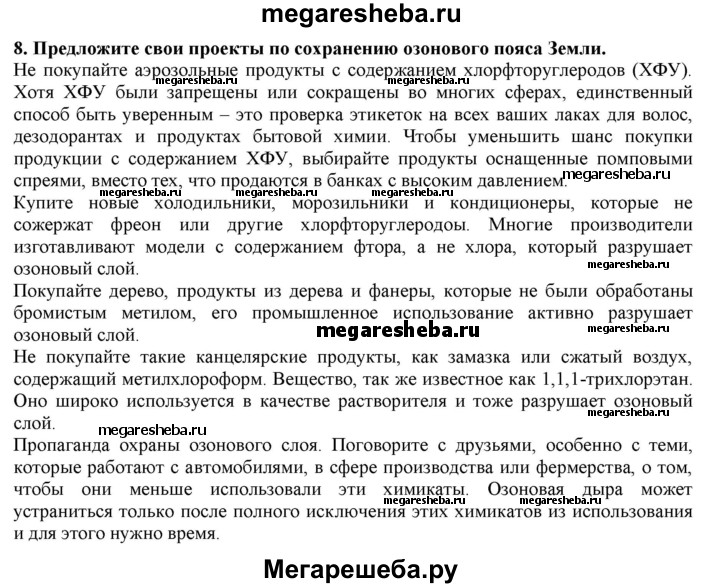 8. Предложите свои проекты по сохранению озонового пояса Земли.
