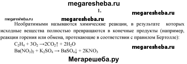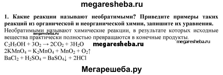 1. Какие реакции называют необратимыми? Приведите примеры таких реакций из органической и неорганической химии, запишите их уравнения.