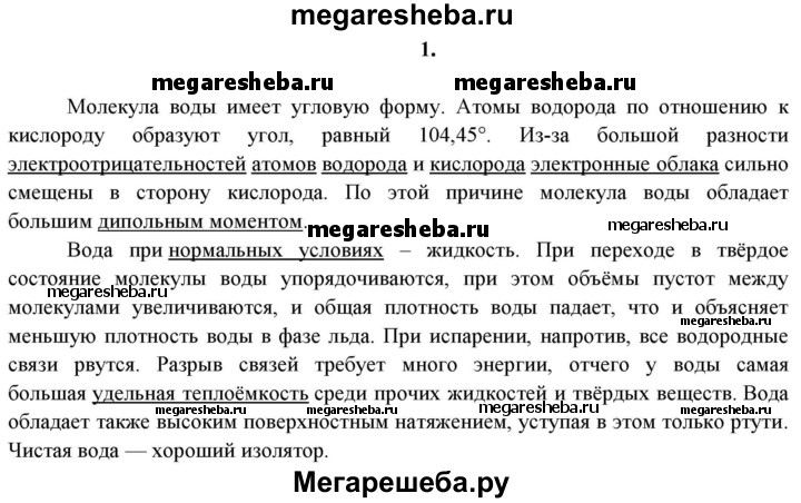 Подробный решебник (ГДЗ) по Химии за 11 (одиннадцатый) класс - готовый ответ Химические реакции Роль воды в химических реакциях - 1. Авторы учебника: Габриелян, Базовый уровень. Издательство: Дрофа 2015.