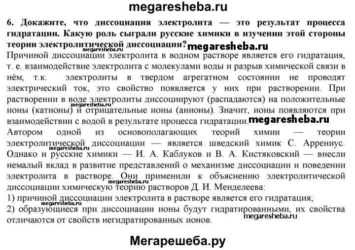 6. Докажите, что диссоциация электролита — это результат процесса гидратации. Какую роль сыграли русские химики в изучении этой стороны теории электролитической диссоциации?