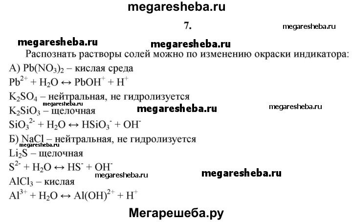 ГДЗ по химии 11 класс Габриелян Базовый уровень Химические реакции Гидролиз - 7