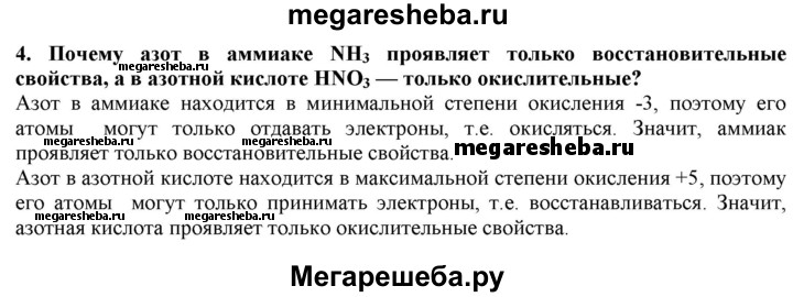4. Почему азот в аммиаке NH3 проявляет только восстановительные свойства, а в азотной кислоте HNO3 — только окислительные?
