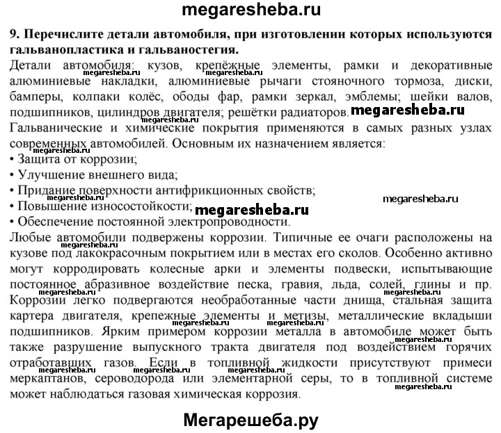 9. Перечислите детали автомобиля, при изготовлении которых используются гальванопластика и гальваностегия.