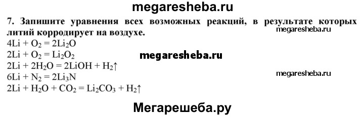 7. Запишите уравнения всех возможных реакций, в результате которых литий корродирует на воздухе.
