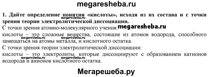 1. Дайте определение понятия «кислоты», исходя из их состава и с точки зрения теории электролитической диссоциации.