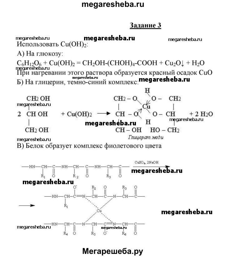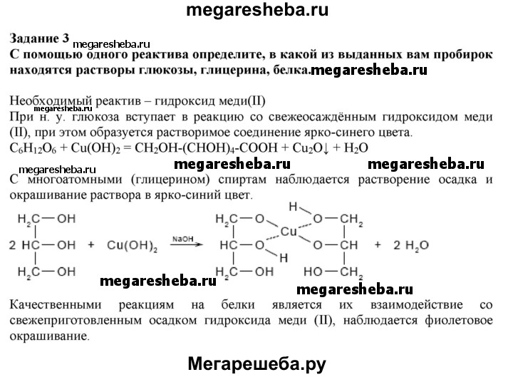 Задание 3. С помощью одного реактива определите, в какой из выданных вам пробирок находятся растворы глюкозы, глицерина, белка.