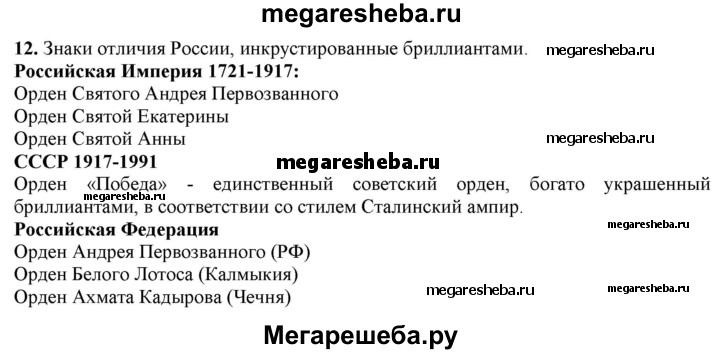 12. Какие знаки государственного отличия в царской, советской и современной России изготовлены с применением бриллиантов?