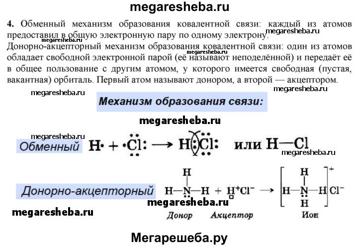 4. Каковы механизмы образования ковалентной связи? Что такое донор; акцептор? Приведите примеры.