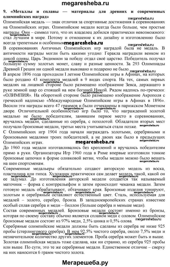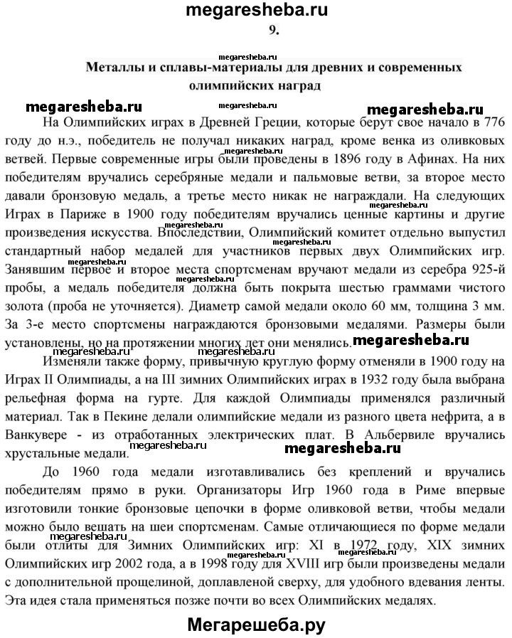 9. Подготовьте сообщение на тему «Металлы и сплавы — материалы для древних и современных олимпийских наград».