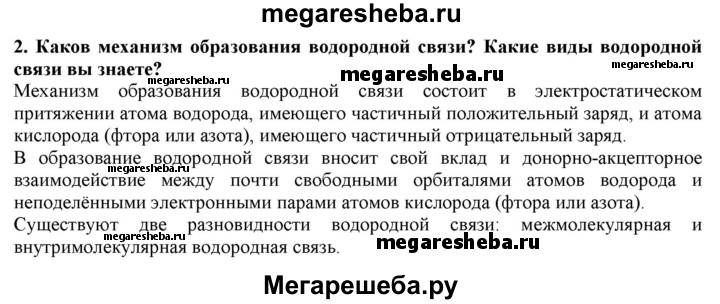 2. Каков механизм образования водородной связи? Какие виды водородной связи вы знаете?