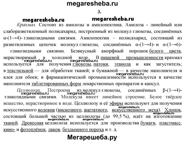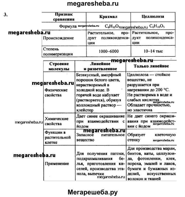 3. Вспомните из курса органической химии особенности строения, свойств и применения крахмала и целлюлозы. Сравните их.
