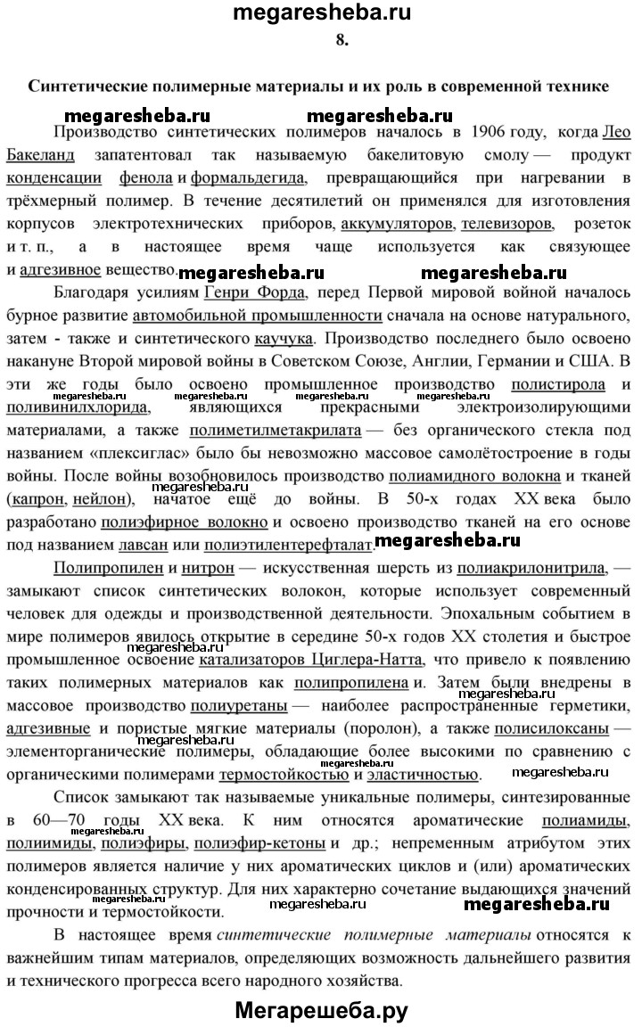 8. Подготовьте сообщение на тему «Синтетические полимерные материалы и их роль в современной технике», используя ЦОРы и различные источники информации.