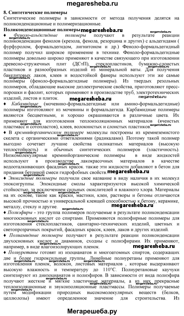 Подробный решебник (ГДЗ) по Химии за 11 (одиннадцатый) класс - готовый ответ Строение вещества Полимеры - 8. Авторы учебника: Габриелян, Базовый уровень. Издательство: Дрофа 2015.