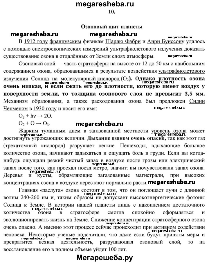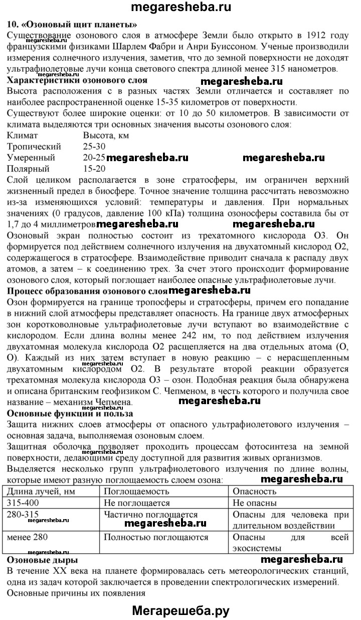 10. Подготовьте сообщение на тему «Озоновый щит планеты», используя возможности Интернета.