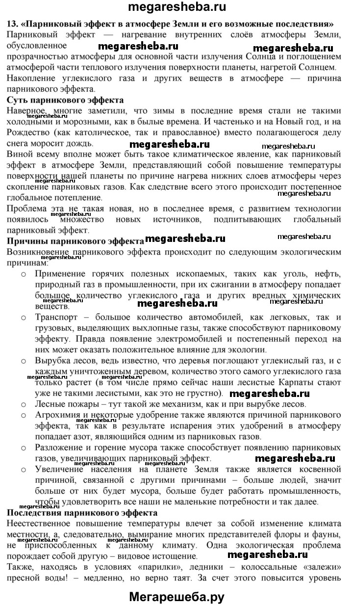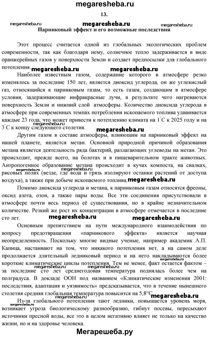 13. С помощью Интернета подготовьте сообщение на тему «Парниковый эффект в атмосфере Земли и его возможные последствия».