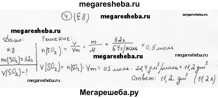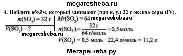 4. Найдите объём, который занимают (при н. у.) 32 г оксида серы (IV).