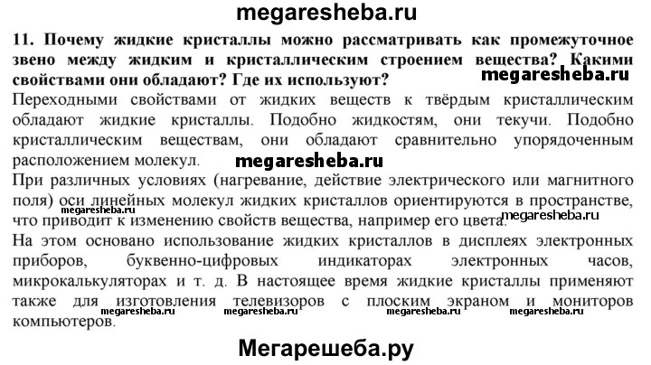 Подробный решебник (ГДЗ) по Химии за 11 (одиннадцатый) класс - готовый ответ Строение вещества Жидкие вещества - 11. Авторы учебника: Габриелян, Базовый уровень. Издательство: Дрофа 2015.
