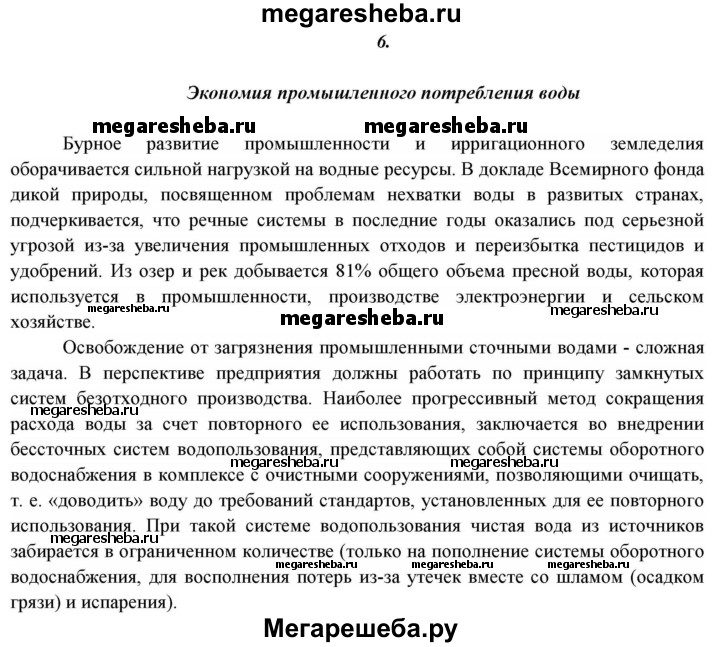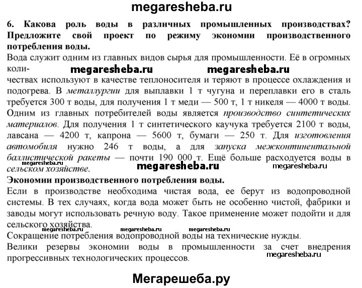6. Какова роль воды в различных промышленных производствах? Предложите свой проект по режиму экономии производственного потребления воды.
