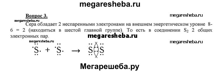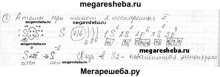 3. Сколько неспаренных электронов имеют атомы серы? Какая связь будет в молекулах S2? Запишите схему образования химической связи в молекулах S2.