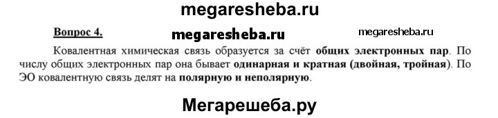 Подробный решебник (ГДЗ) по Химии за 8 (восьмой) класс - готовый ответ ГЛАВА ПЕРВАЯ. Атомы химических элементов § 12. Ковалентная полярная химическая связь - 4. Авторы учебника: Габриелян. Издательство: Дрофа 2015, 2019.