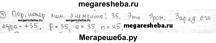4. Порядковый номер элемента в таблице Д. И. Менделеева равен 35. Какой это элемент? Чему равен заряд ядра его атома? Сколько протонов, электронов и нейтронов в его атоме?