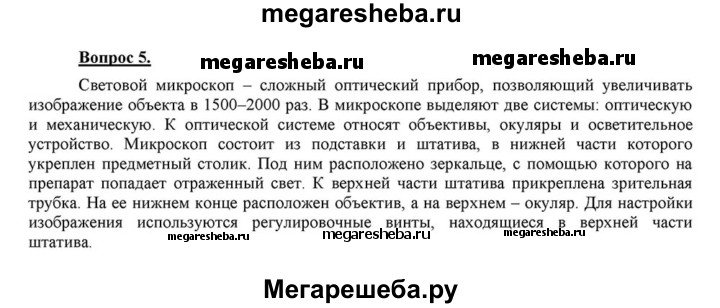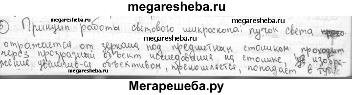 5. На уроках биологии вы рассматривали клетки растений, используя световой микроскоп. Каков принцип действия этого микроскопа?