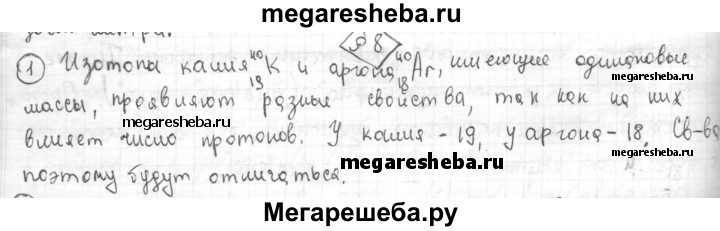 1. Как вы думаете, почему изотопы калия 40/19K и аргона 40/18Ar, имеющие одинаковые массы, проявляют разные свойства?