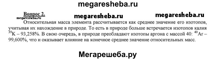 2. Почему в таблице Д. И. Менделеева относительная атомная масса аргона близка к 40, а калия — к 39?