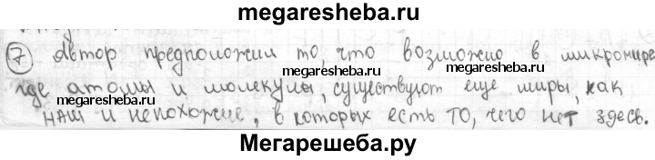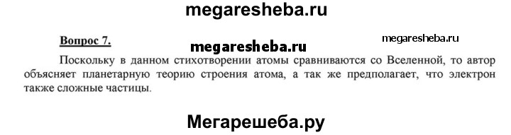 7. Попробуйте дать собственное толкование следующих строк из стихотворения В. Брюсова «Мир электрона»: Быть может, эти электроны — Миры, где пять материков, Искусства, званья, войны, троны И память сорока веков. Ещё, быть может, каждый атом — Вселенная, где сто планет; Там всё, что здесь, в объёме сжатом, Но также то, чего здесь нет.