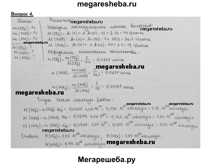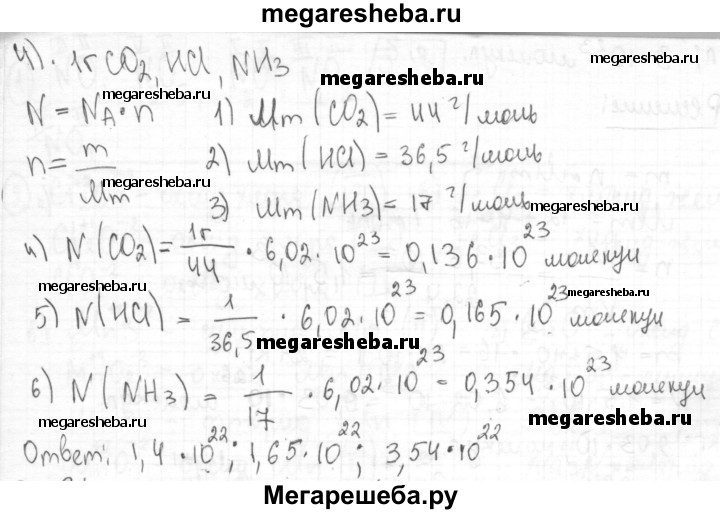 4. Сколько молекул каждого вещества содержится в 1 г CO2, HCl, NH3?