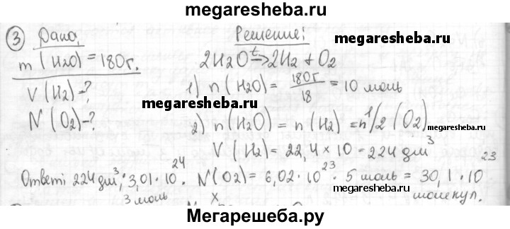 3. Сколько молекул кислорода и какой объём водорода (н. у.) образуется при разложении 180 г воды?