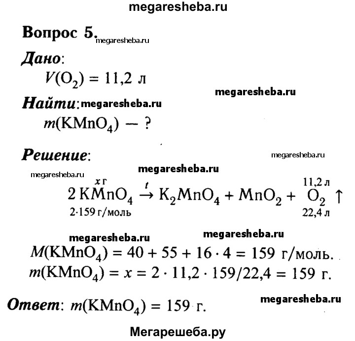 Подробный решебник (ГДЗ) по Химии за 8 (восьмой) класс - готовый ответ ГЛАВА ЧЕТВЁРТАЯ. Изменения, происходящие с веществами § 29. Расчёты по химическим уравнениям - 5. Авторы учебника: Габриелян. Издательство: Дрофа 2015, 2019.