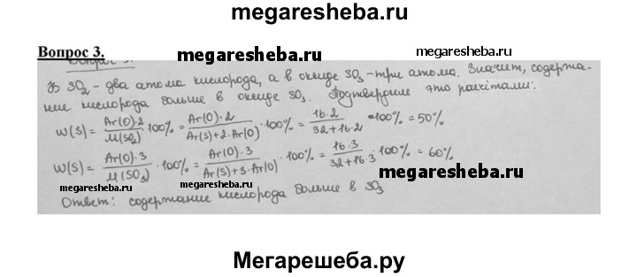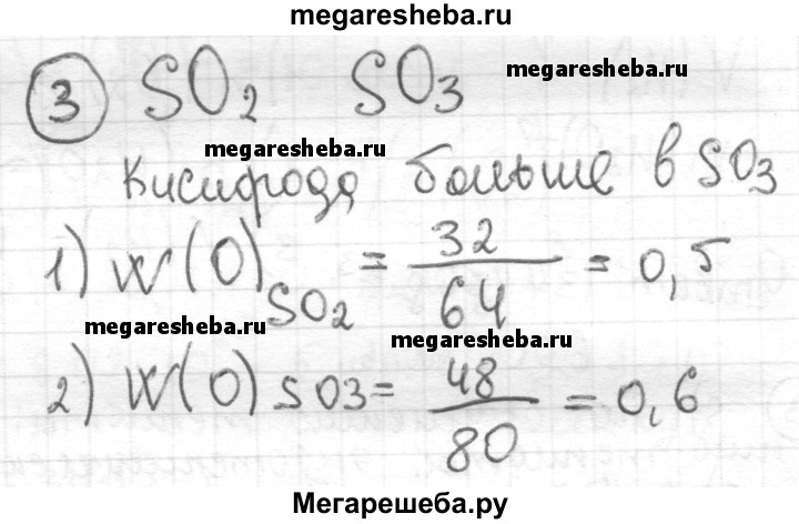 3. Не производя вычислений, укажите, в каком из оксидов серы — (IV) или (VI) — содержание кислорода больше. Найдите массовую долю кислорода в каждом из указанных оксидов.