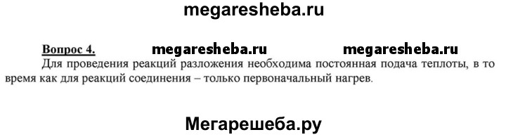 4. Для проведения каких реакций, соединения или разложения, необходима постоянная подача теплоты для их протекания, а для каких — только первоначальная подача теплоты?