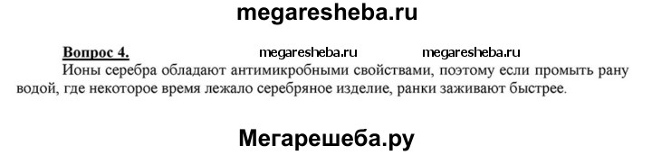 4. Почему ранки, промытые водой, в которую были помещены серебряные изделия, заживают быстрее?