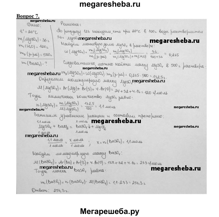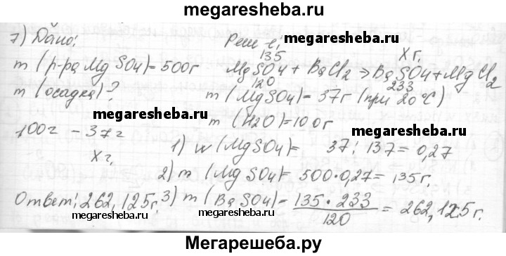7. К 500 г насыщенного при 20 °C раствора сульфата магния (см. рис. 126) прилили достаточный для проведения реакции объём раствора хлорида бария. Найдите массу выпавшего осадка.