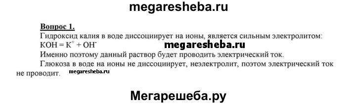 1. Объясните, почему раствор гидроксида калия проводит электрический ток, а раствор глюкозы C6H12O6 — нет.