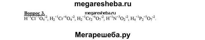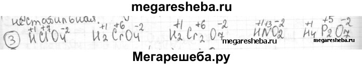 3. Определите степени окисления элементов в следующих кислотах: хлорной HClO4, хромовой H2CrO4, двухромовой H2Cr2O7, азотистой HNO2, пирофосфорной H4P2O7.