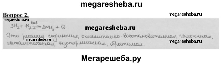2. Дайте характеристику реакции синтеза аммиака по всем изученным вами признакам классификации химических реакций.
