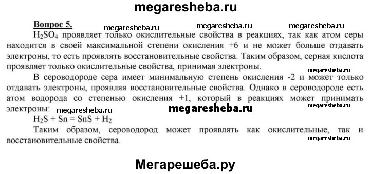 5. Какое из веществ — сероводород H2S и серная кислота H2SO4 — проявляет только окислительные или только восстановительные свойства? Почему?