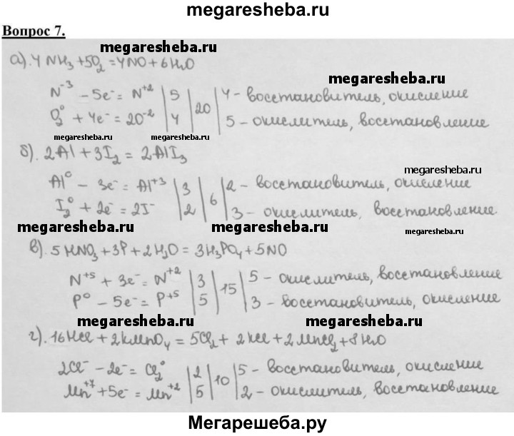 Подробный решебник (ГДЗ) по Химии за 8 (восьмой) класс - готовый ответ ГЛАВА ПЯТАЯ. Растворение. Растворы. Реакции ионного обмена и окислительно-восстановительные реакции § 44. Окислительно-восстановительные реакции - 7. Авторы учебника: Габриелян. Издательство: Дрофа 2015, 2019.
